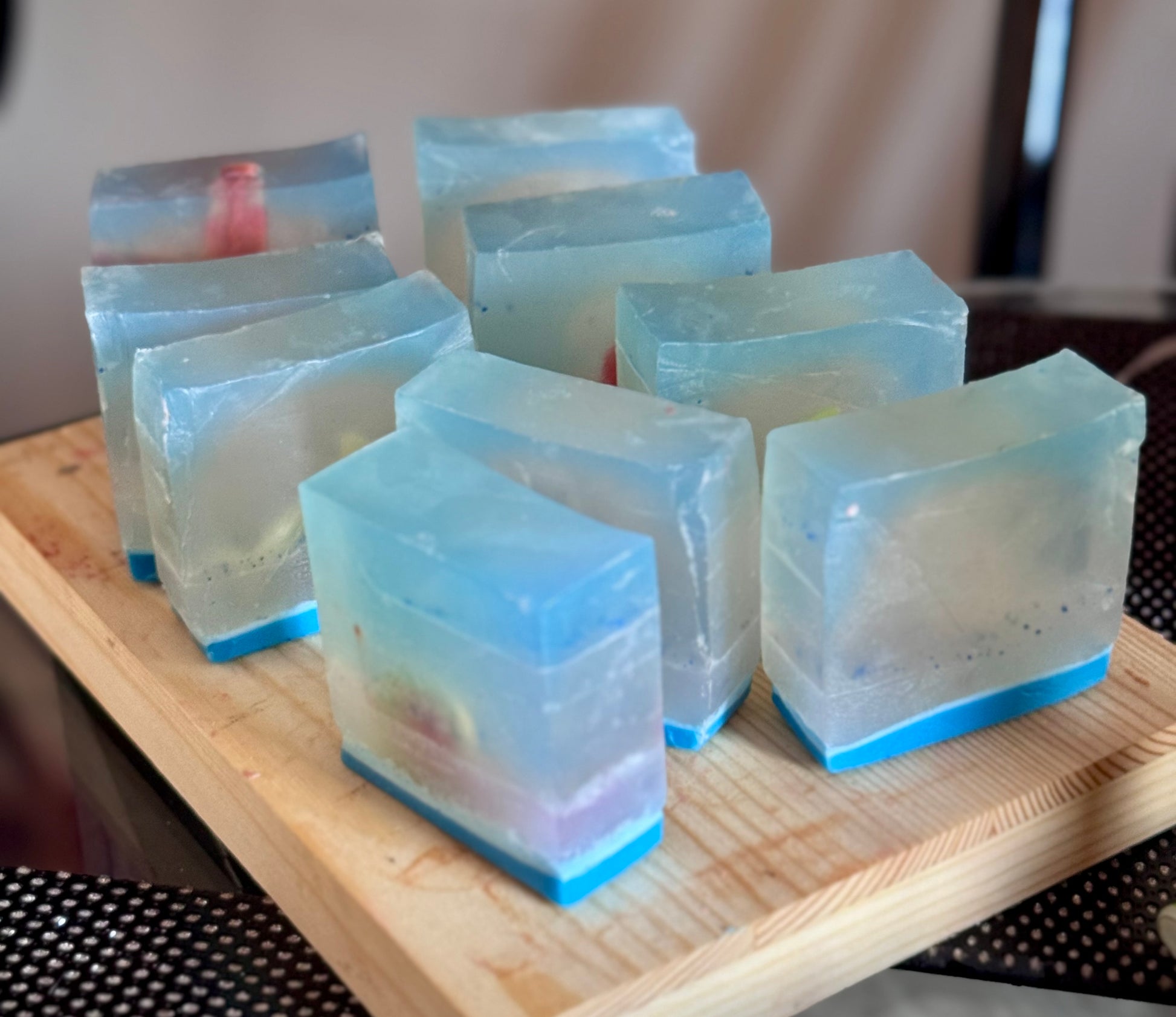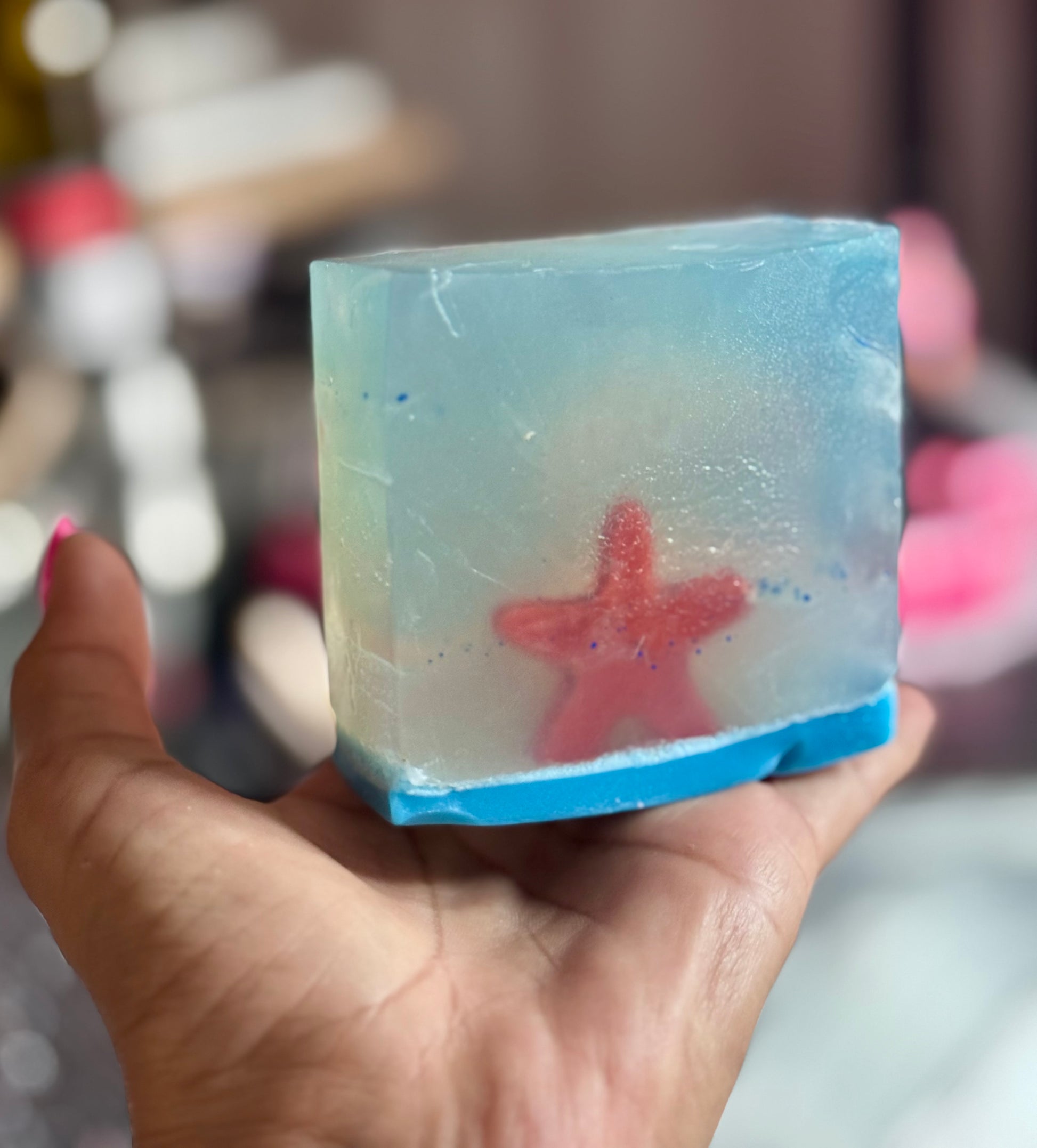 Introducing our Blue Lagoon Goat Milk & Glycerin Soap—a masterpiece of indulgence where creamy goat milk dances with the silky smoothness of glycerin. Each bar is a canvas, swirling with dreamy azure hues reminiscent of tranquil waters, inviting you into a world of lush lather and luxurious care. As you glide this soap across your skin, it envelops you in a gentle embrace, transforming your bathing ritual into a rejuvenating escape🩷