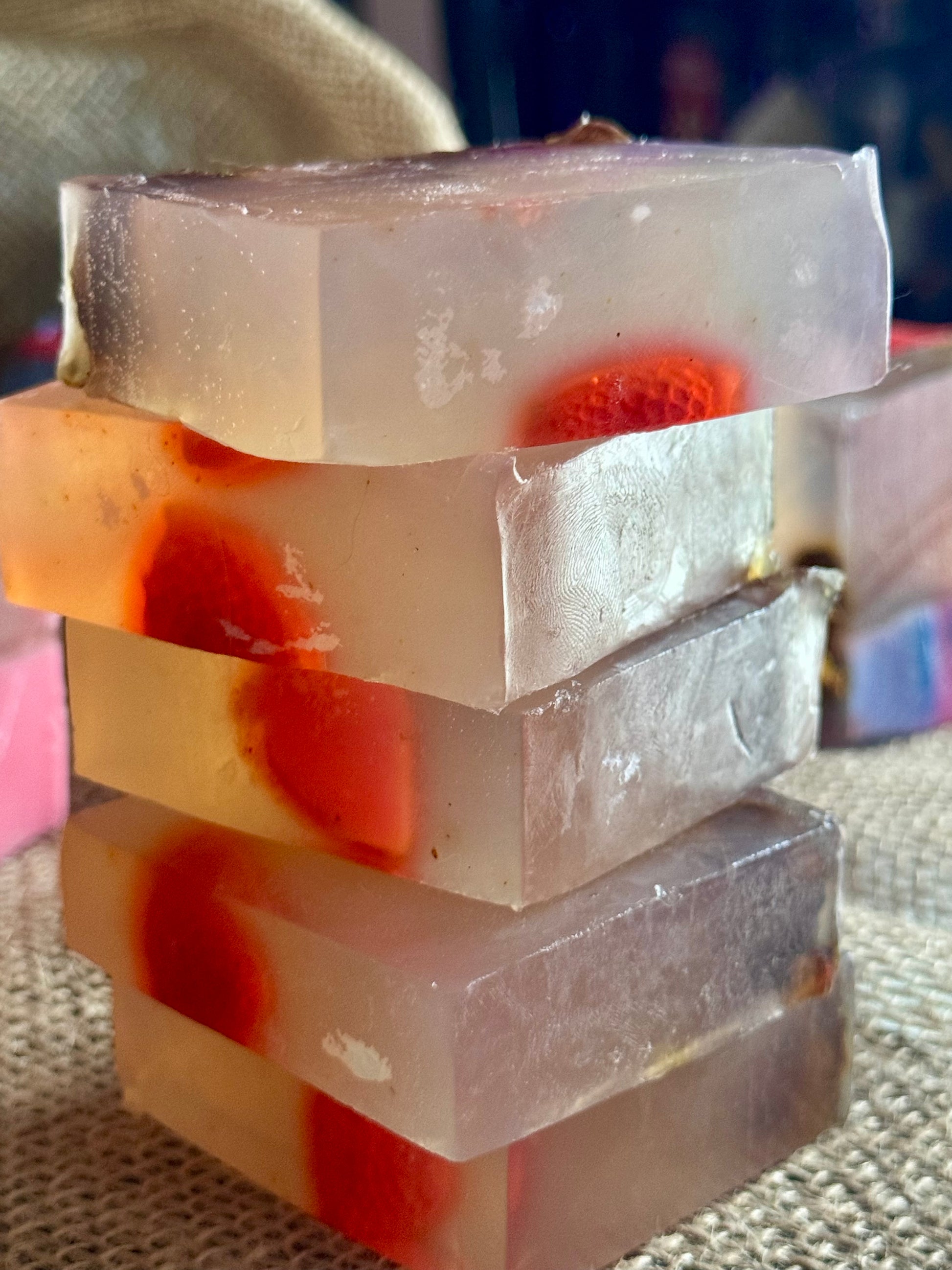Handmade with love, my soap features vibrant, freshly picked mint from my very own garden, delivering a burst of invigorating aroma that awakens the senses. Complemented by the zesty brightness of sun-ripened lemon zest, this blend creates a refreshing and uplifting fragrance that transforms your daily cleansing routine into a delightful sensory experience 🩷